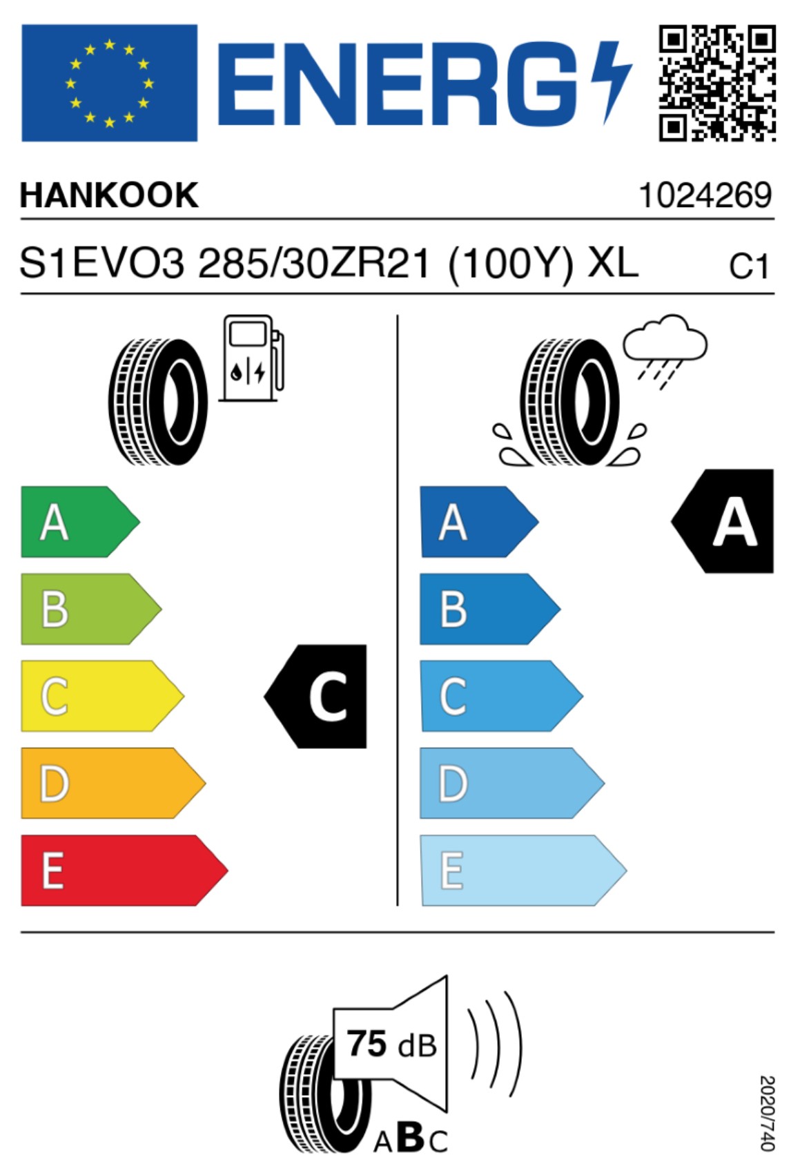 2 Stück Sommerreifen Hankook Ventus S1 Evo3 in 285/30 R21 100Y XL C, A, 75 dB (Hinterachse)